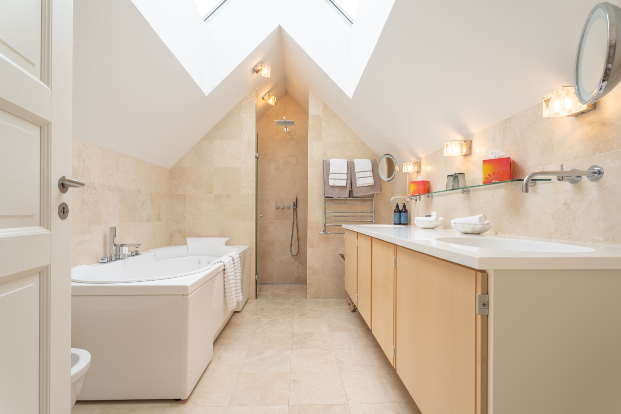Udlejes minimum 3 dage med fuld hotelforplejning inkl. rengøring, linned, morgenkåber, morgenbuffet samt adgang til faciliteterne i Ruths Wellness.