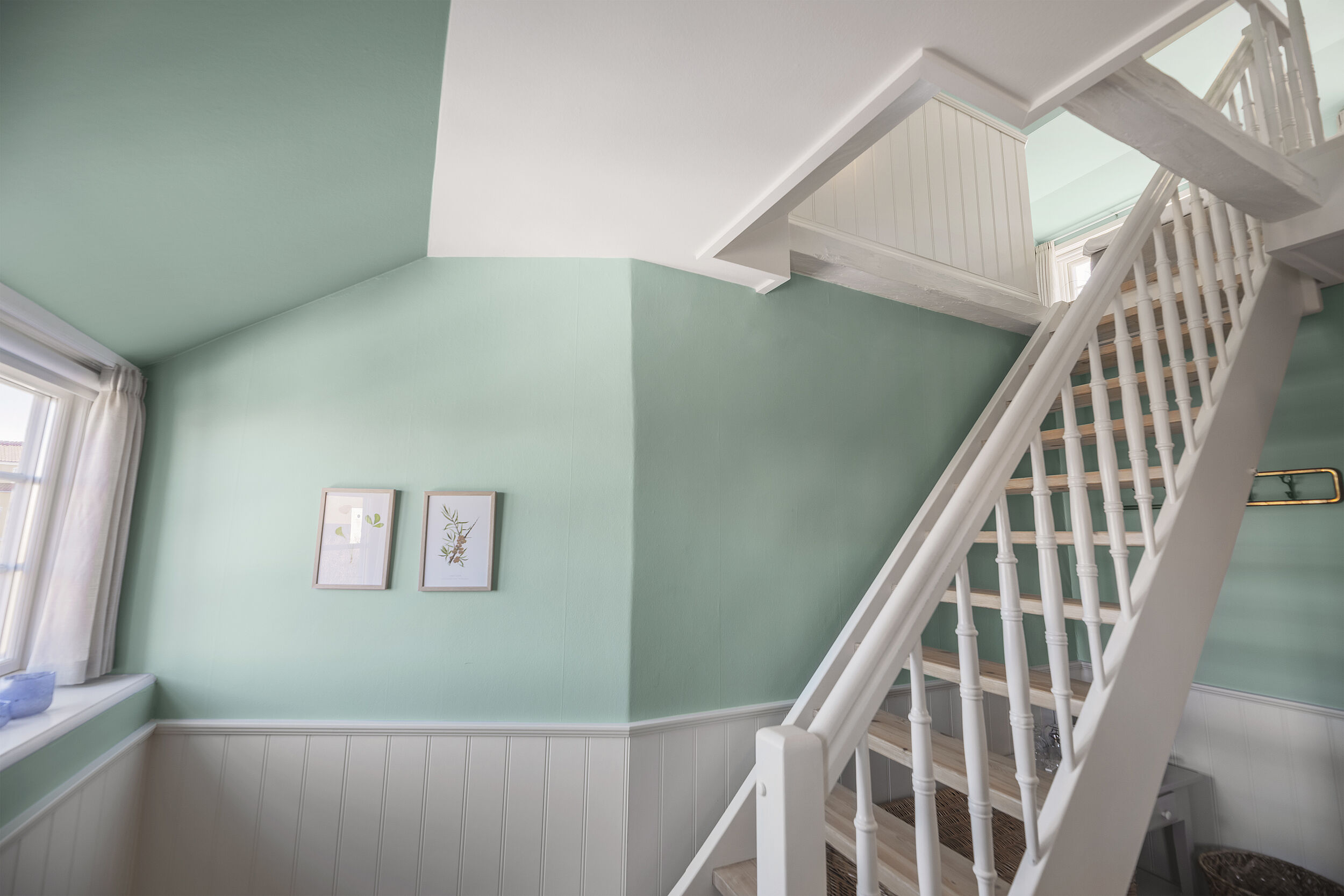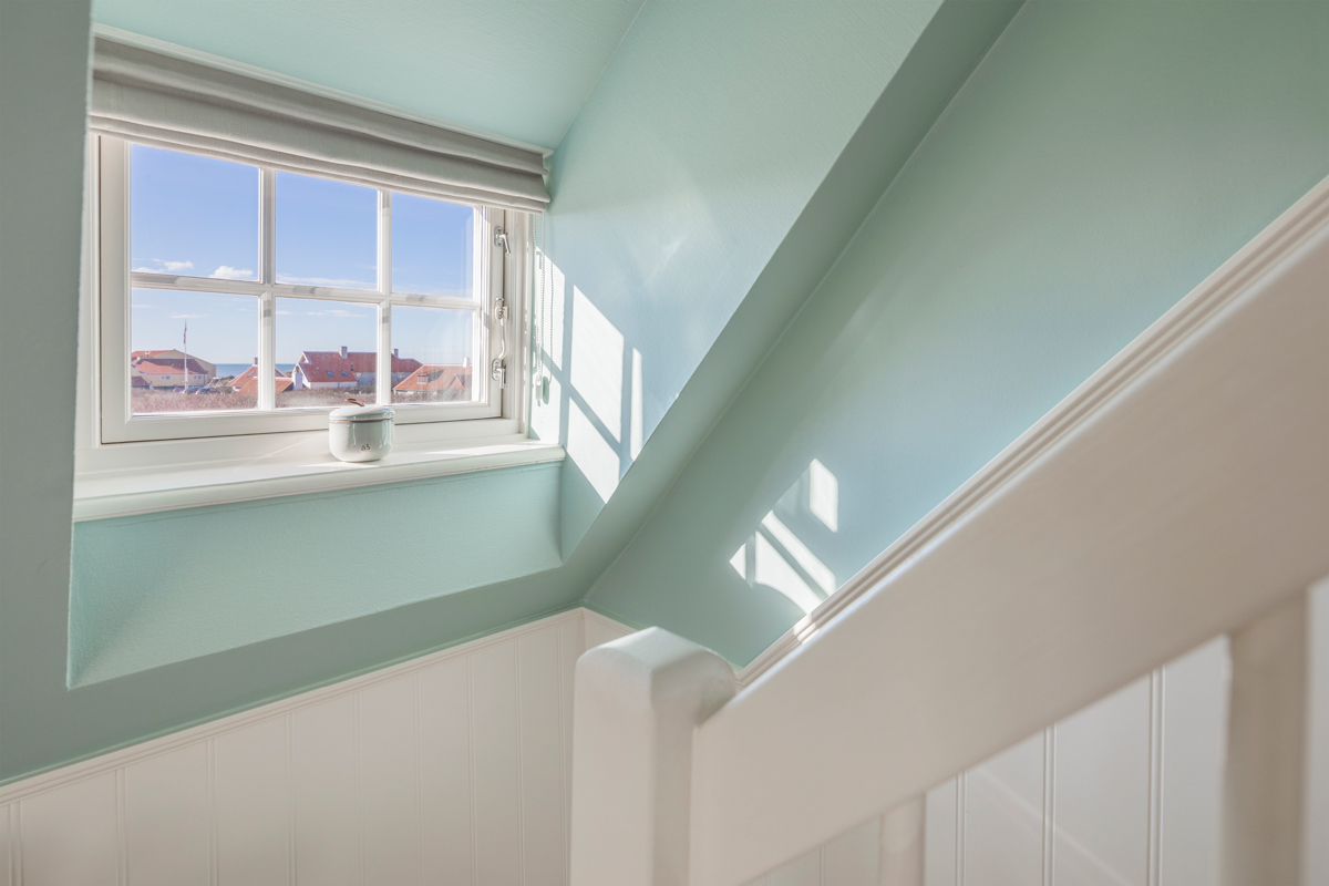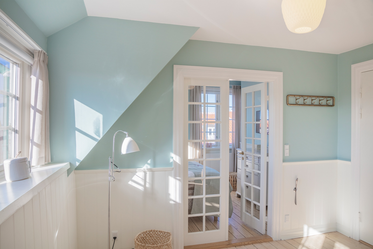 Der er også tænkt kreativt i forhold til at udnytte det enkelte værelses særpræg og naturlige lysindfald. Via farvevalg og de hvide træpaneler