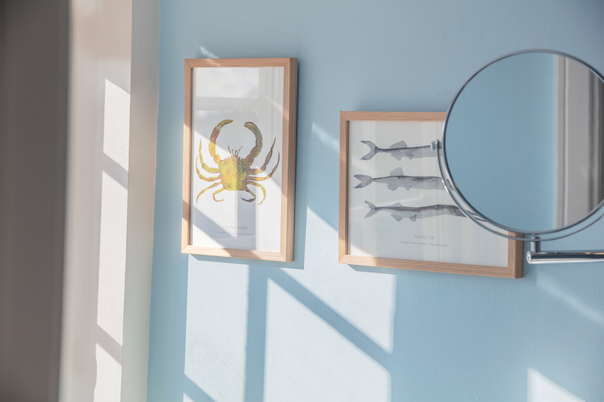 Naturen i og omkring Gl. Skagen er en tydelig inspirationskilde, hvor netop himlen, havet, sandet og naturens øvrige farver elegant