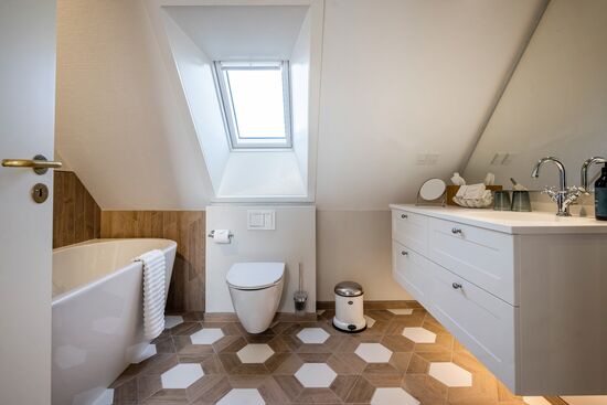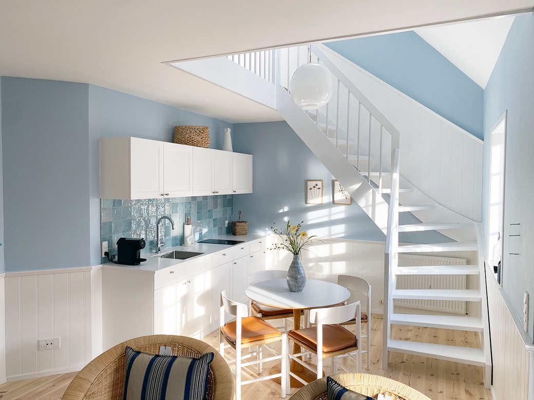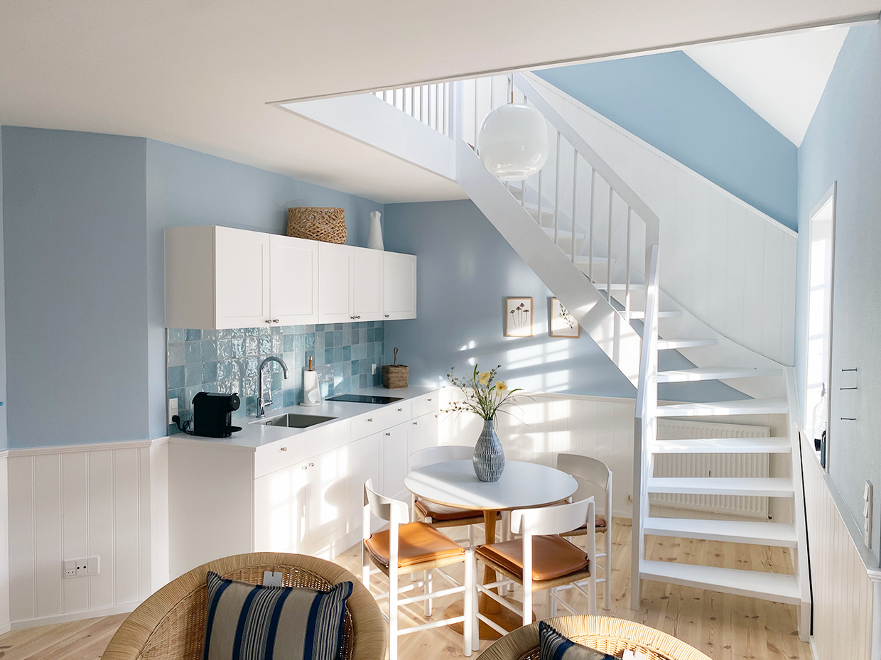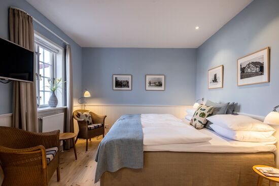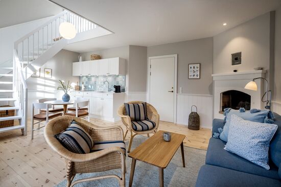 Vinteren 2023 er anvendt til at totalrenovere vores kære Strandhus. Alt fra gulv til loft er renoveret og hele bygningen er udstyret med nyt interiør. I Strandhuset tilbyder både almindelige dobbeltværelser samt lejligheder. Alle værelser har egen indgang, lejlighederne via egen terrasse mod syd, og dobbeltværelserne via lille terrasse mod nord. Der er 6 værelser og 6 lejligheder i Strandhuset. Disse lejligheder er velegnet til, når hele familien er afsted, eller eksempelvis når vennepar er på et ophold sammen.