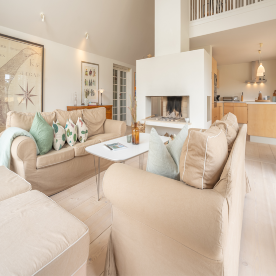 Fra huset er der desuden en enestående udsigt over Gl. Skagens klitlandskab og det velkendte sømærke på toppen af Kikkerbakken. Kombinationen af det særlige Skagenslys og den betagende udsigt skaber de perfekte rammer for inspiration og store tanker.