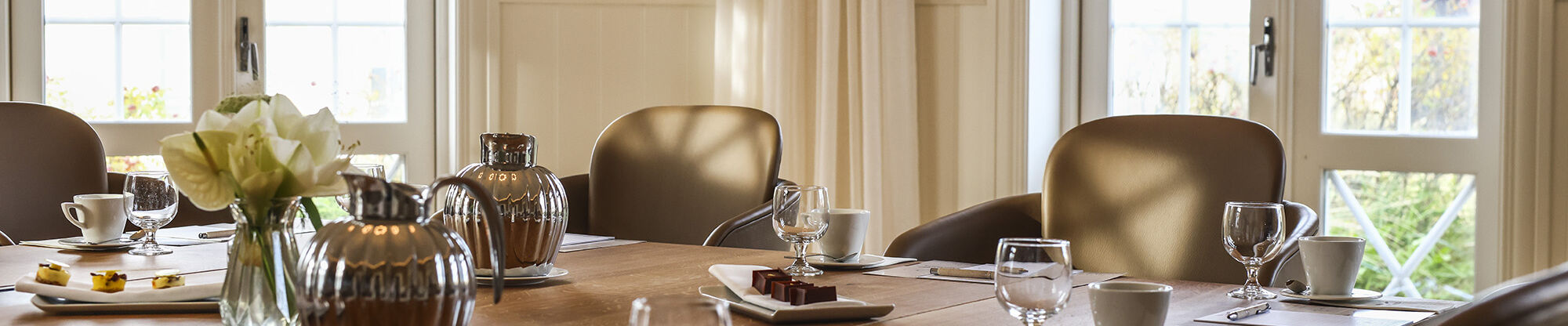 De store vinduer tillader skagenslyset at komme med til bords, og dette atmosfærefyldte lokale kan virkelig sætte den perfekte stemning. Det gælder alt fra små eksklusive møder til flere dages workshop, hvor omgivelserne oplagt kan give inspiration og motivation til arbejdsopgaverne.