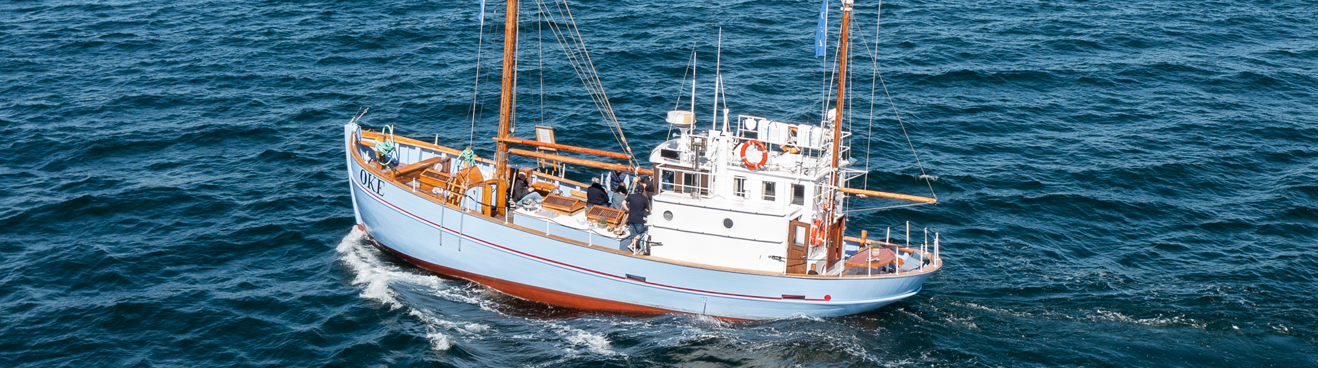 Oplev en helt særlig rejse på det smukke hav ombord på det historiske fiskefartøj, OKE. Under den klare, blå himmel, omgivet af frisk havvind og i godt selskab, vil du mærke roen brede sig i sjælen.