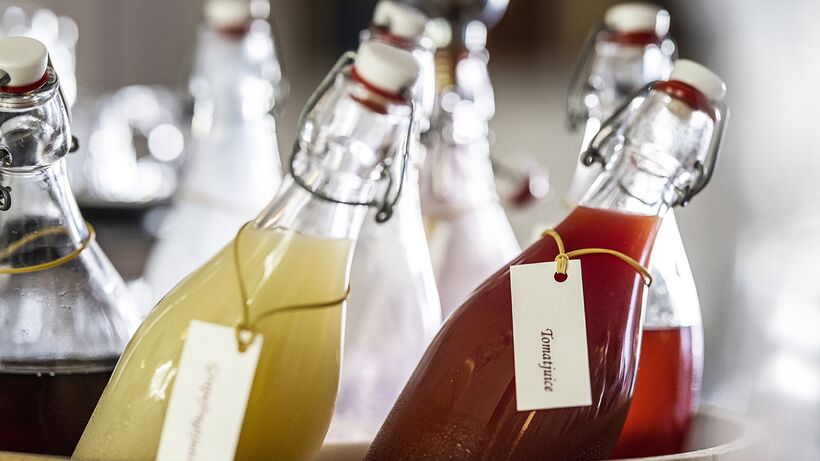 Appelsinjuicen der serveres i Dagmarsalen, er juice af friskpresset appelsiner. Appelsinerne er nøje udvalgte og kvalitetstestet på markedet i Frankrig og leveres flere gange ugentligt af Peter Paris.