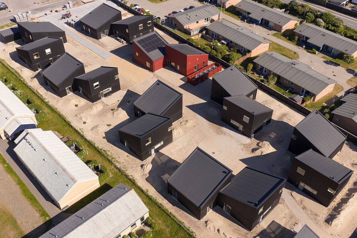 Dette inkluderer: 10 huse à 90,5 m2 4 huse à 96 m2 Fælleshus på 139,8 m2.