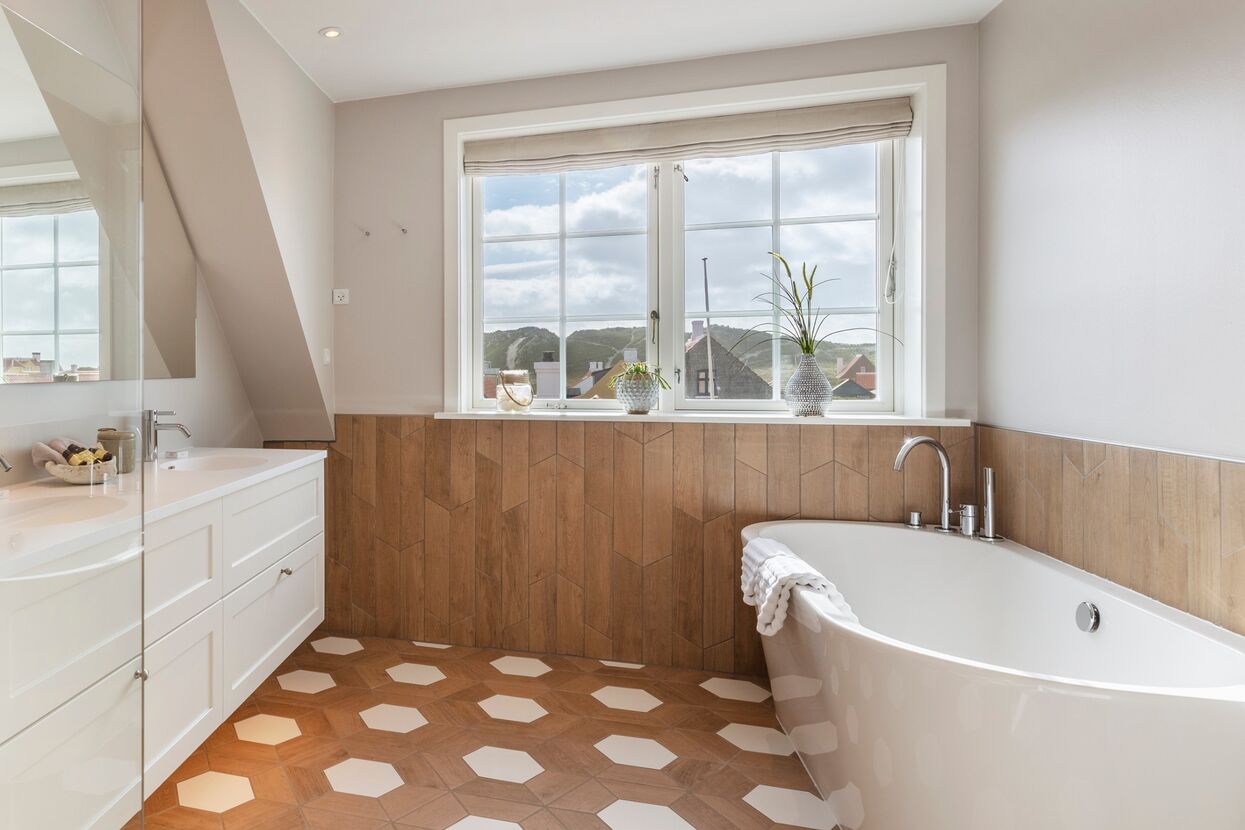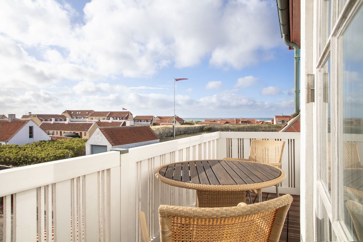 På den vidunderlige store vestvendte balkon foreligger muligheden for at nyde solnedgangen over de gule huse i Gl. Skagen idyllen.