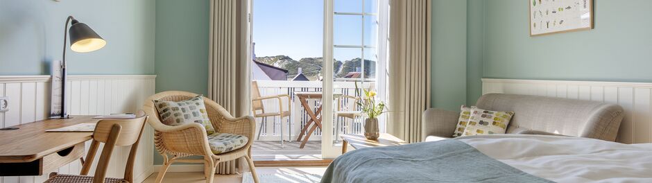 Vi kan tilbyde overnatning i fem forskellige bygninger, der hver har deres egen unikke historie og særpræg. De ligger alle i kort afstand til hovedbygningen, hvor vi har reception, morgenmadsrestaurant, brasserie, gourmet restaurant, pejsestue og wellness.